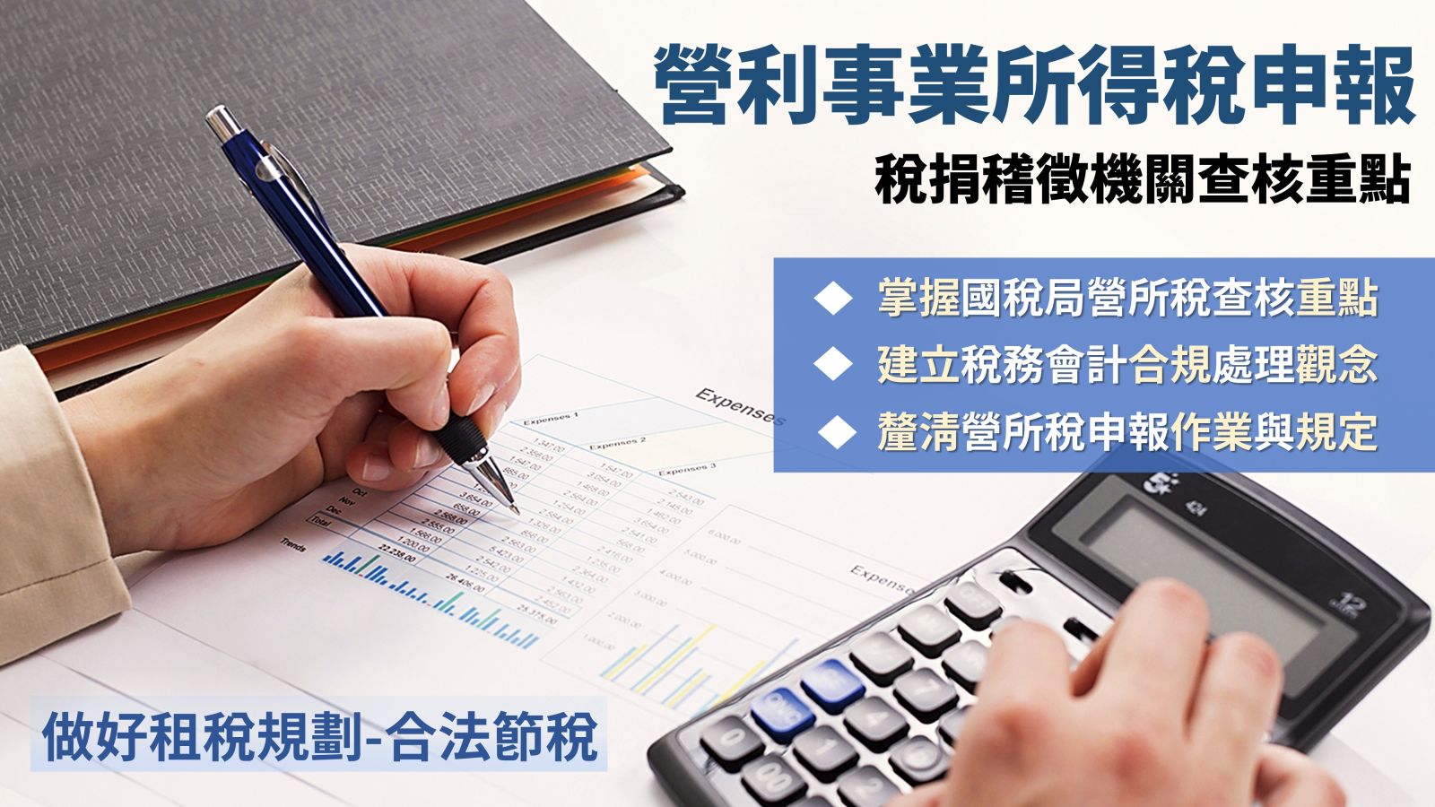 針對最近年度國稅局審核營利事業所得稅重點分析,俾利於公司於平日稅務會計處理能正確合法,而且於申報明年營利事業所得稅能合於法令規定,以免補稅受罰。