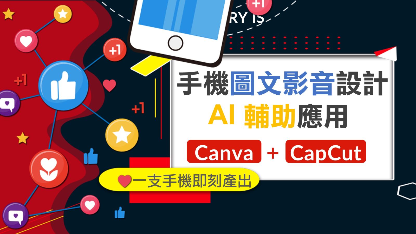 本課程專為「非設計背景」與「非影視科系」的社群經營者設計,以智慧型手機為核心生產力工具,結合 Canva 視覺設計、短影音剪輯 與 AI輔助腳本優化,建立一套低成本、高效率的內容產製流程。