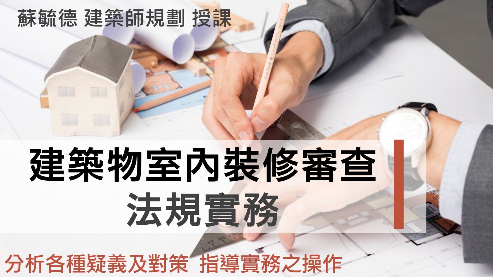 *本課程搭配用書「書名:室內裝修設計實務法規解析(發行所:詹氏出版)作者:蘇毓德」