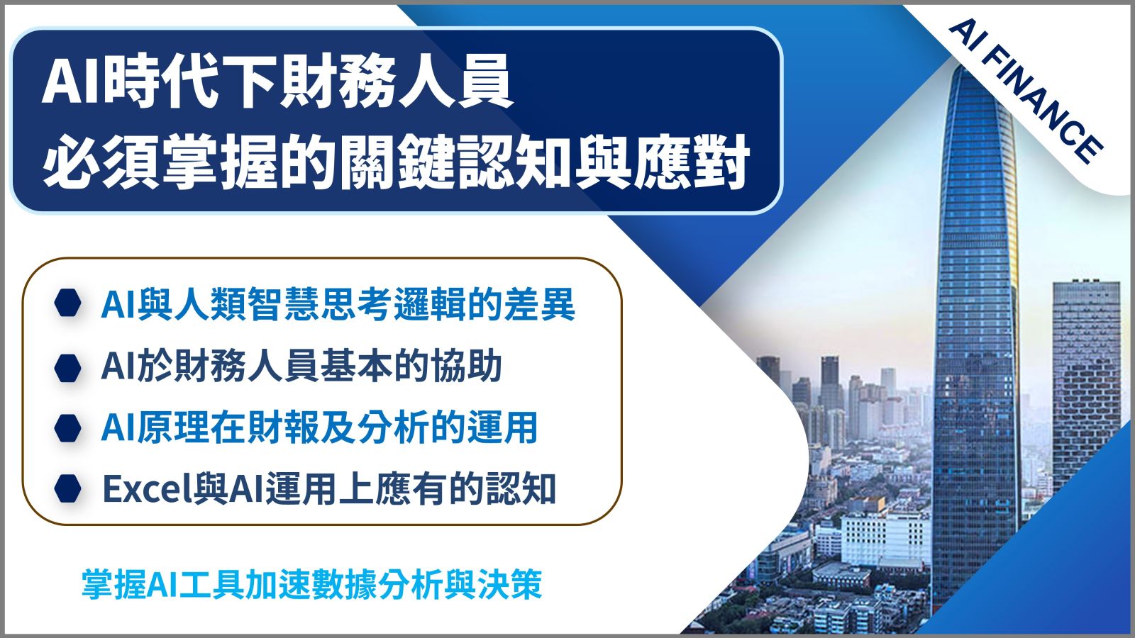 4.本課程將針對上述從AI的邏輯與財務人員在財報及分析上基本相互關連性與協助性作闡述,增強財務人員對AI人工智慧的正確認知與基本應對技能。